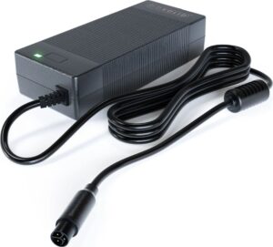 Caricabatterie compatto GO SOLID! 36V 2A con connettore a 3 poli, perfetto come caricatore di ricambio per batterie Brinckers Intube. Ricarica veloce e sicura con protezione da sovraccarico e cortocircuito e indicatore LED. Design leggero e compatto per e‑bike e dispositivi mobili. Compatibile con Brinckers Intube.