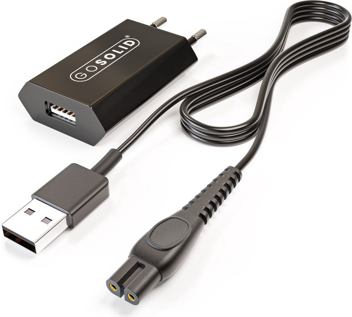 Caricabatterie 5V compatto GO SOLID! ideale come ricambio per il tuo tagliacapelli. Offre ricarica stabile e sicura con protezioni da sovracorrente e cortocircuito. Leggero e portatile, perfetto per viaggio o uso quotidiano. Compatibile con Revahs ClipperTwo Pro.