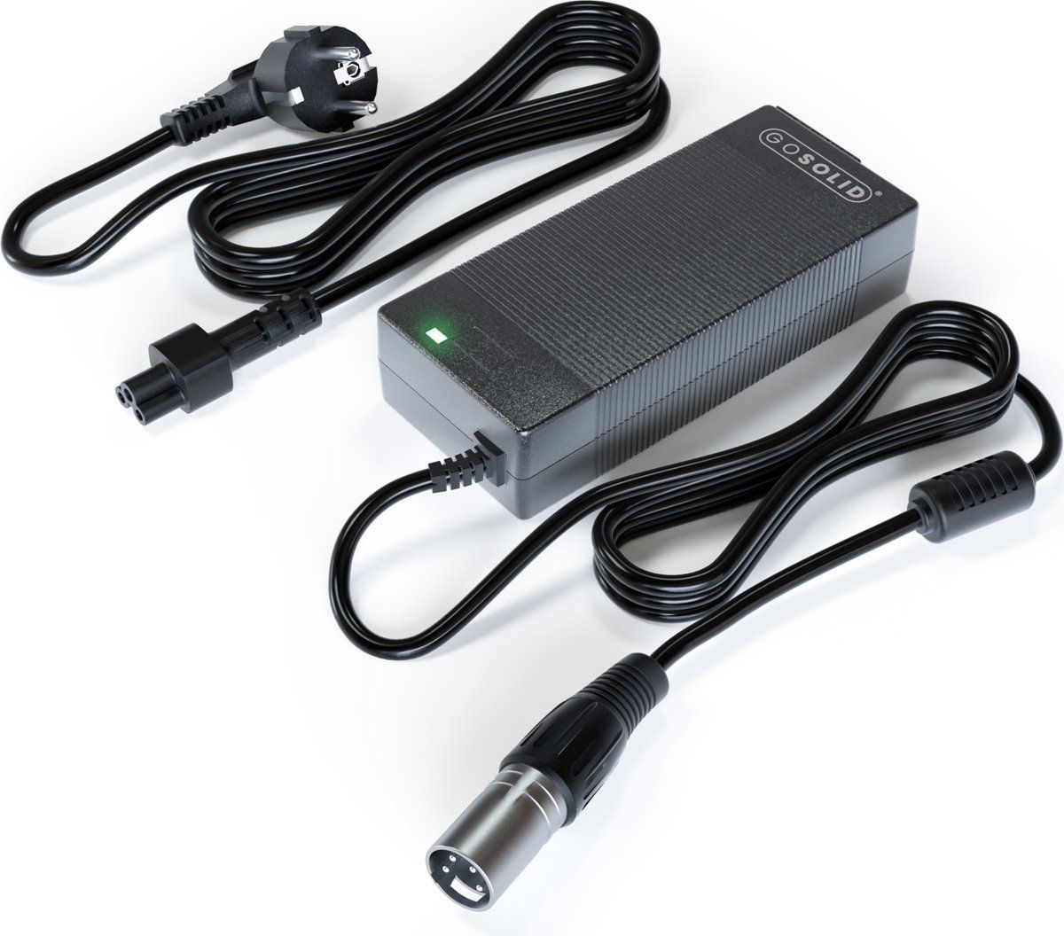 GO SOLID! Caricabatterie di ricambio per bicicletta elettrica B'twin Rockrider ST100 con spina XRL4. Compatto e resistente, progettato per una ricarica sicura e affidabile. Compatibile con B'twin. Caratteristiche: connettore XRL4 dedicato, costruzione solida e uso semplice — ideale come caricabatterie sostitutivo. Seguire le istruzioni del produttore del veicolo prima dell'uso.