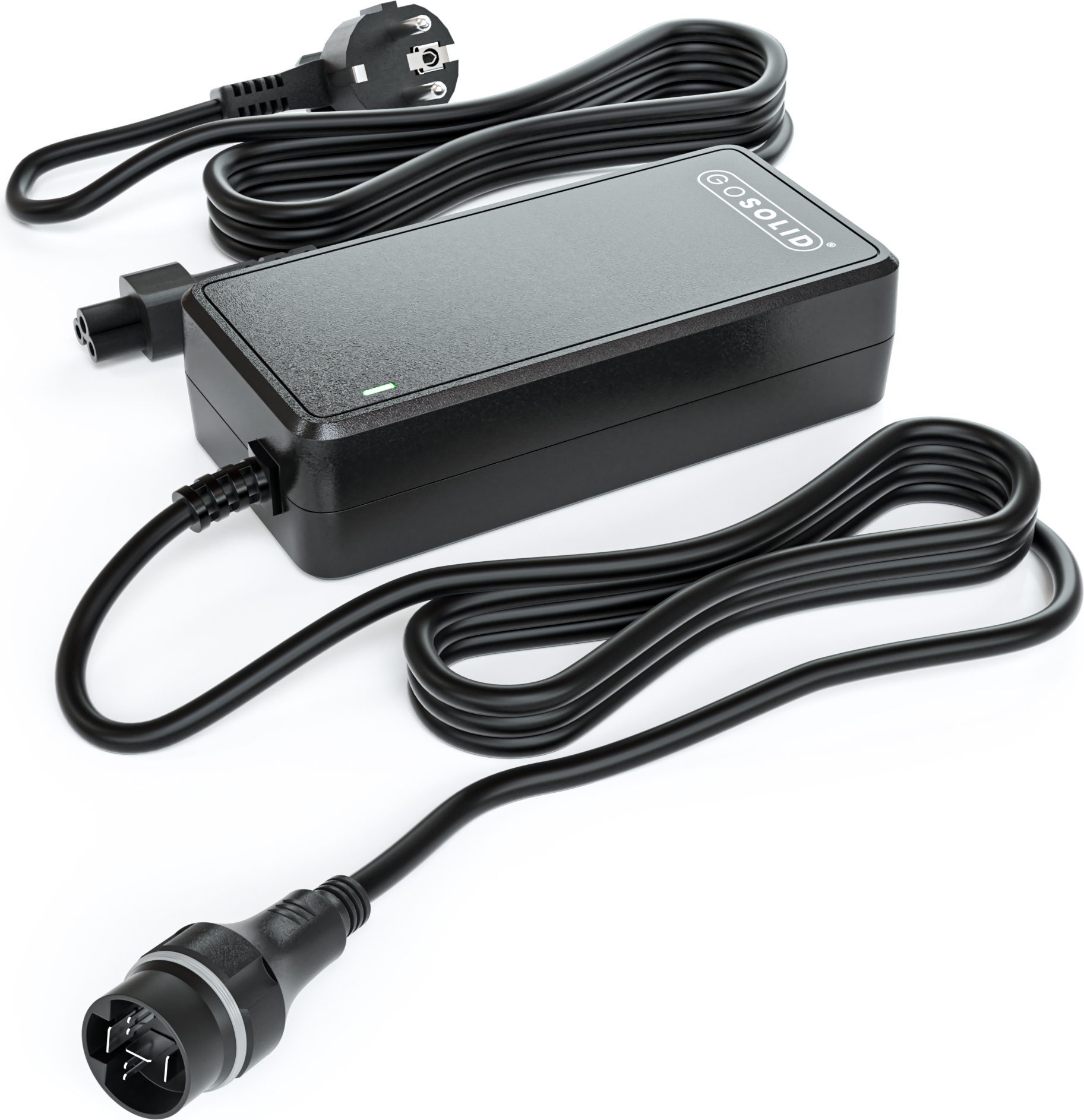 Caricabatterie GO SOLID! PASC9 compatto per batteria Yamaha In-Tube 36V X1R-10. Ricambio affidabile con carica stabile, protezioni integrate, indicatore LED e cavo di ricarica resistente. Ideale per e-bike e veicoli elettrici leggeri. Compatibile con Yamaha.