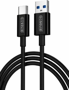 GO SOLID! Cavo di ricarica USB a USB‑C 2 m – Nero. Cavo robusto e flessibile per ricarica rapida e trasferimento dati affidabile. Connettori di qualità per connessione stabile e minima perdita di segnale. Ideale a casa, in ufficio o in viaggio. Compatibile con Samsung. Compatibile con iPhone.